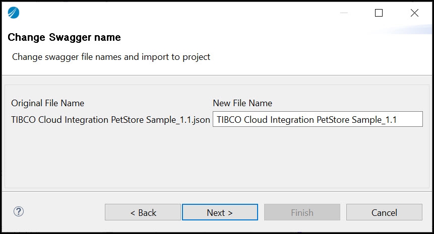 Note: APIs that were created using a Swagger file must be implemented exactly as defined by the Swagger file. TIBCO Business Studio for BusinessWorks allows you to only view the parameters and operations that are defined in the Swagger file. You cannot create any new parameters or operations for such applications.