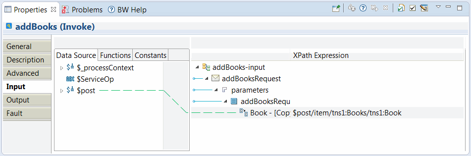 The Input tab is available in the Properties view and is used to enter data for an activity. Input data for an activity can be any of the following: