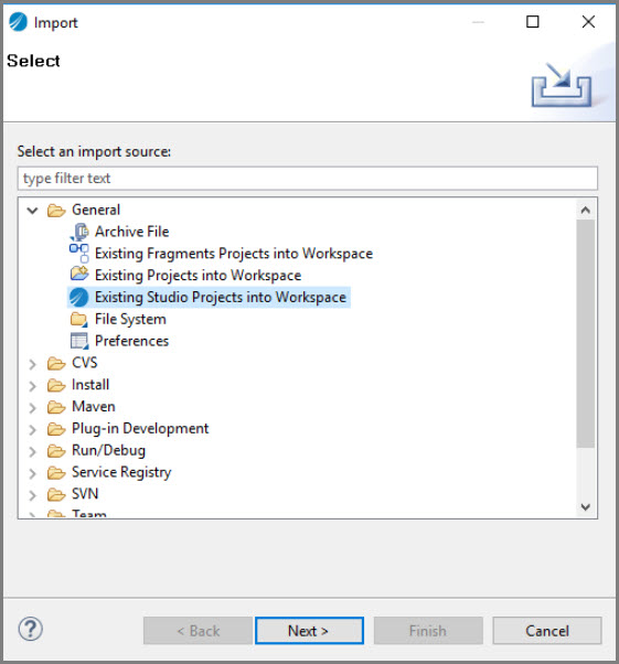 - Select the Select archive file: option to import the projects in .zip file where the required project is stored.