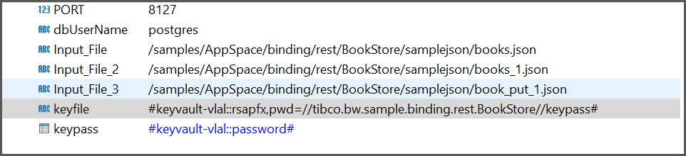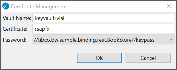 On TIBCO Business Studio for BusinessWorks, the format is stored as #<KEY_VAULT_NAME>::<CERTIFICATE_NAME>::<PASSWORD>#