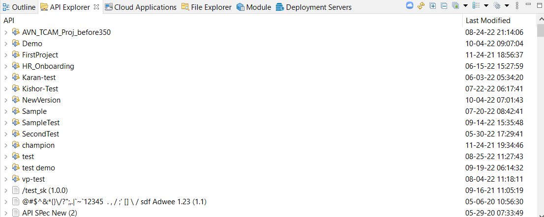 Displays a connected view of the TIBCO Cloud™ Integration API Modeler residing in the cloud. This view shows an abstract APIs that is created in API Modeler. You can also view the APIs residing on your local machine from the API Explorer.