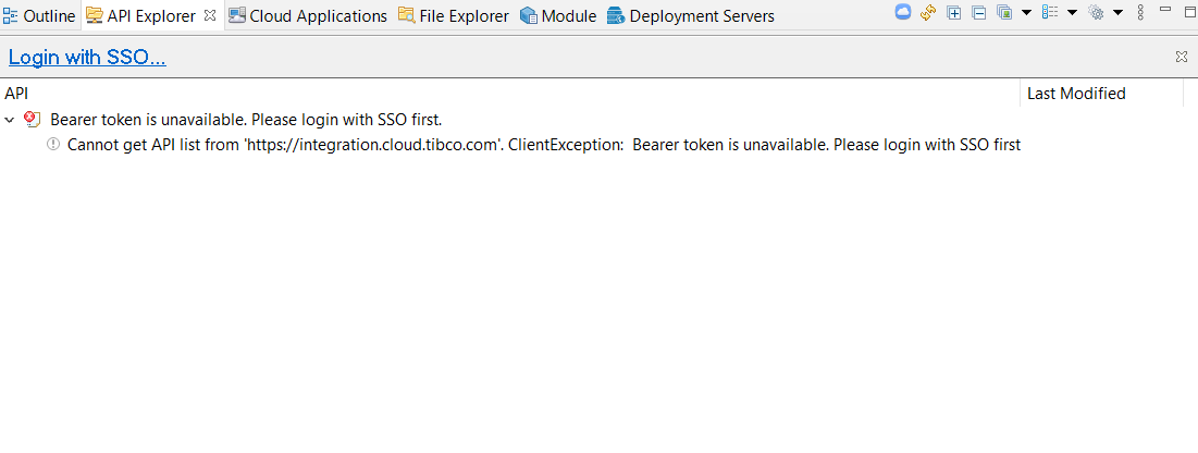 When you open TIBCO Business Studio for BusinessWorks for the very first time, select the API Explorer tab that displays a login view.