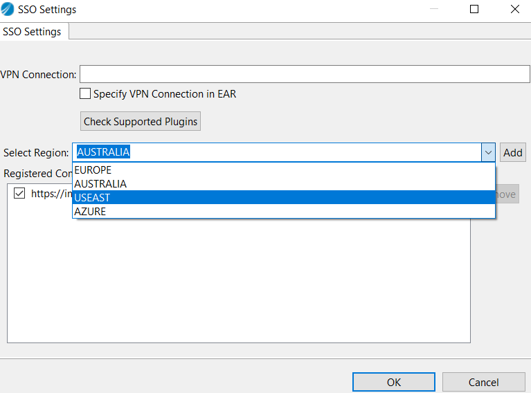 - Select the appropriate Registry/Region from the dropdown list and click Add.