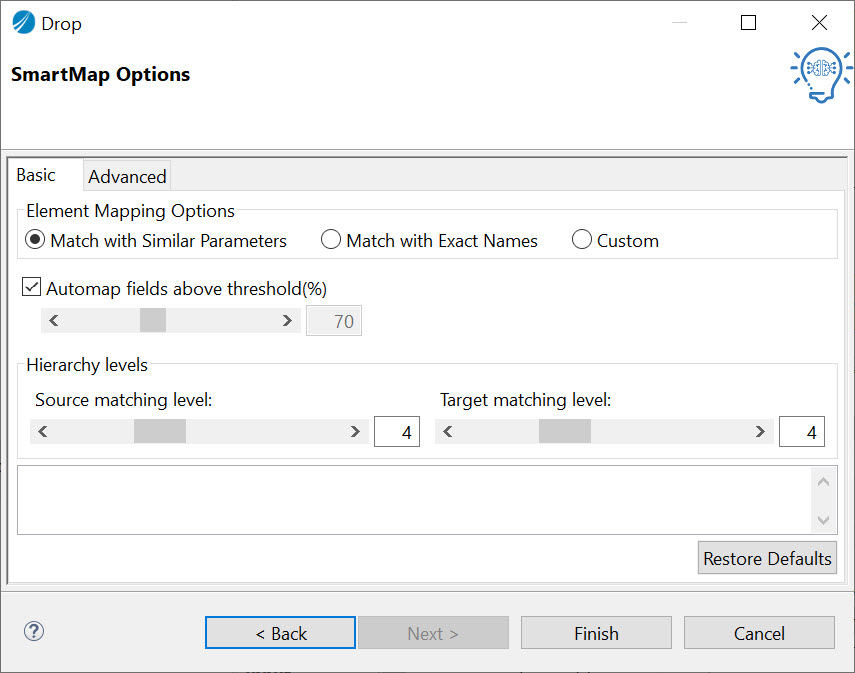 | Source matching level | Level up to which the mapper must look for a matching element from the selected source element for dragging.