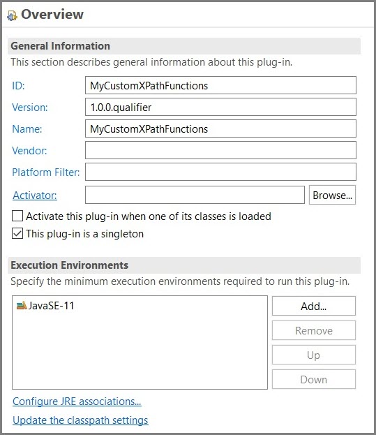 Now your Custom XPath function is ready for use at design time and run time.Note: The Custom XPath functions work only when the plug-in is marked as singleton.