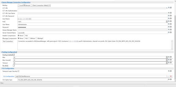- In the Queue Manager Connection Configuration panel, click Remote in the Binding area.