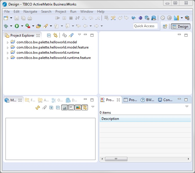 - Click Run to launch a child TIBCO Business Studio configured with the bw-runtime platform.