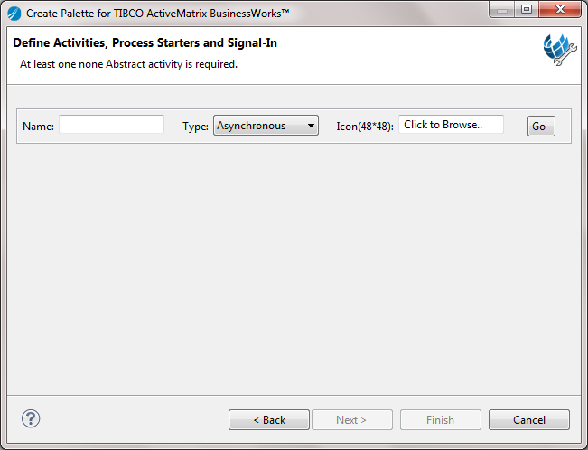 You are now directed to the Define Activities, Process Starters and Signal-In dialog. Go back to Step 1 to add more activities.