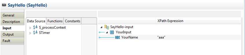 Take the input of the SayHello activity as an example.