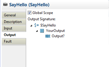<element maxOccurs="1" minOccurs="0" name="Output" type="string"/>