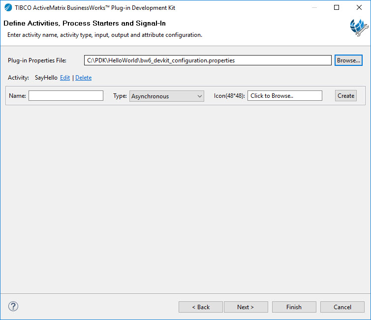 - Open the BusinessWorks Plug-in Development Kit wizard in one of the following ways:
