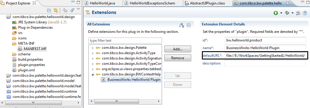 - Click the Extensions tab and click the com.company_name.bw.design.BWContextHelp extension.