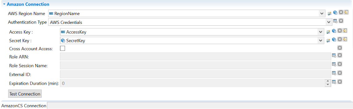 The Amazon Connection shared resource is available at the Resource level. Before creating an Amazon shared resource, ensure that you have created a project as described in