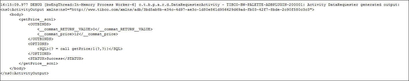 After the Execute_procedure_GETPRICE process runs successfully, its input and output can be seen as follows: