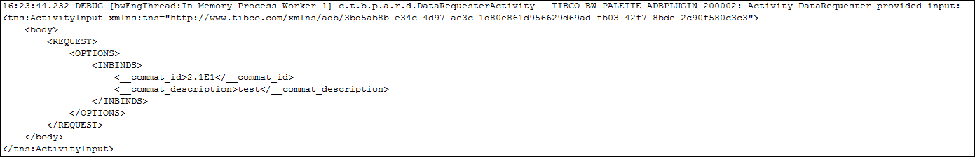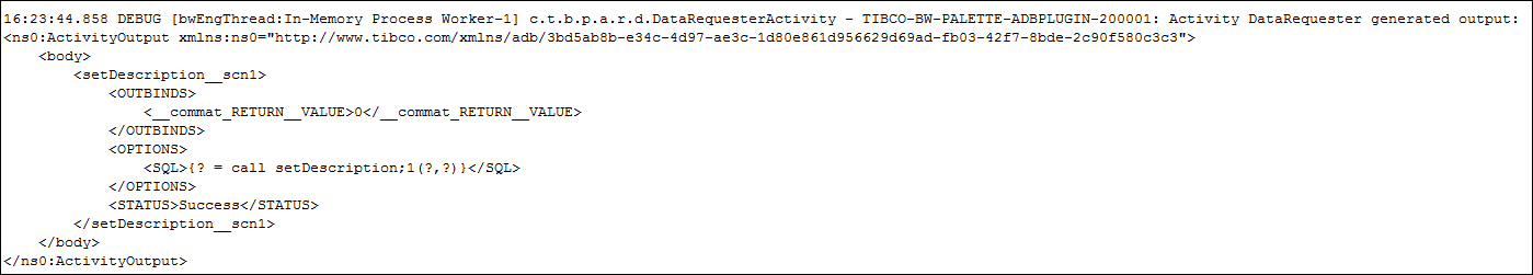 After the Execute_procedure_SETDESCRIPTION process runs successfully, its input and output can be seen as follows: