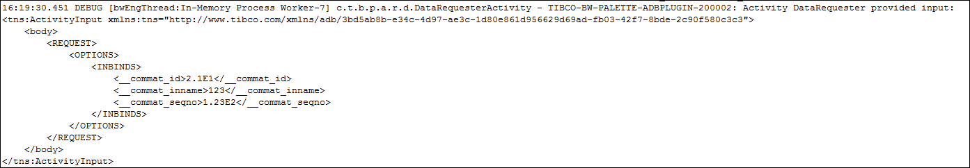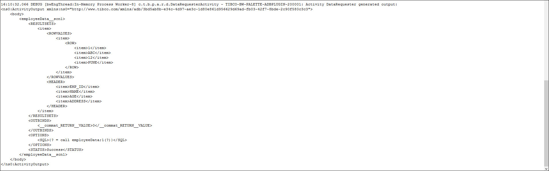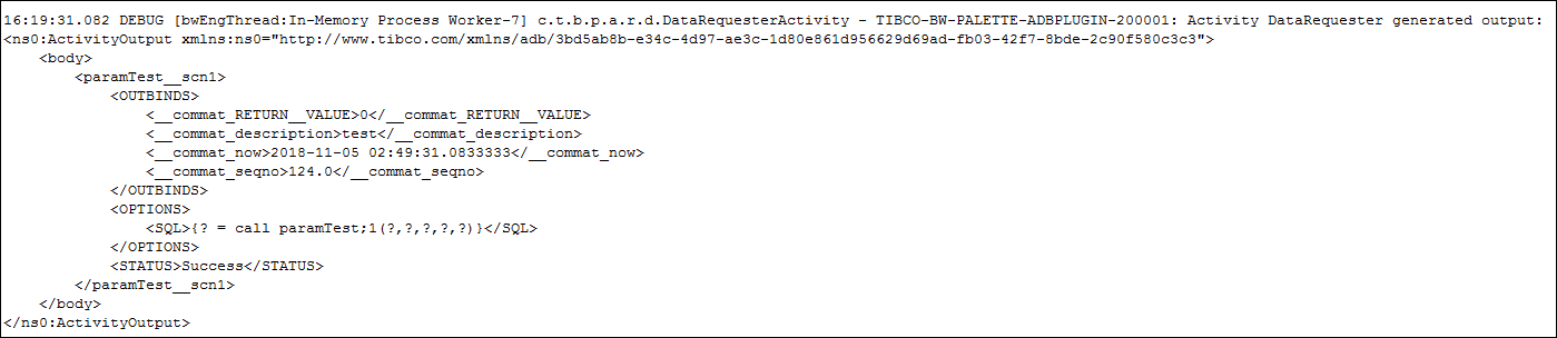 After the Execute_procedure_PARAMTEST process runs successfully, its input and output can be seen as follows: