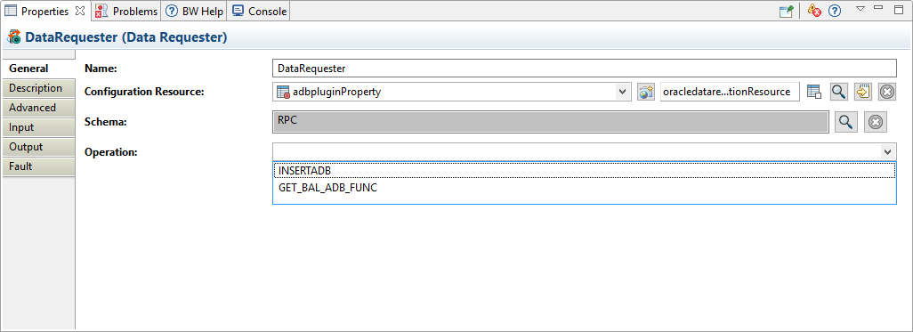 Data Requester Activity: General Tab: RPC Mode with Custom Operations
