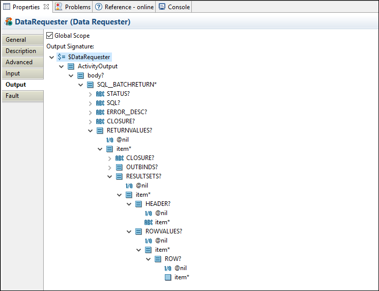 For more information about how different data types are mapped to the XSD type, see Output Mapping.