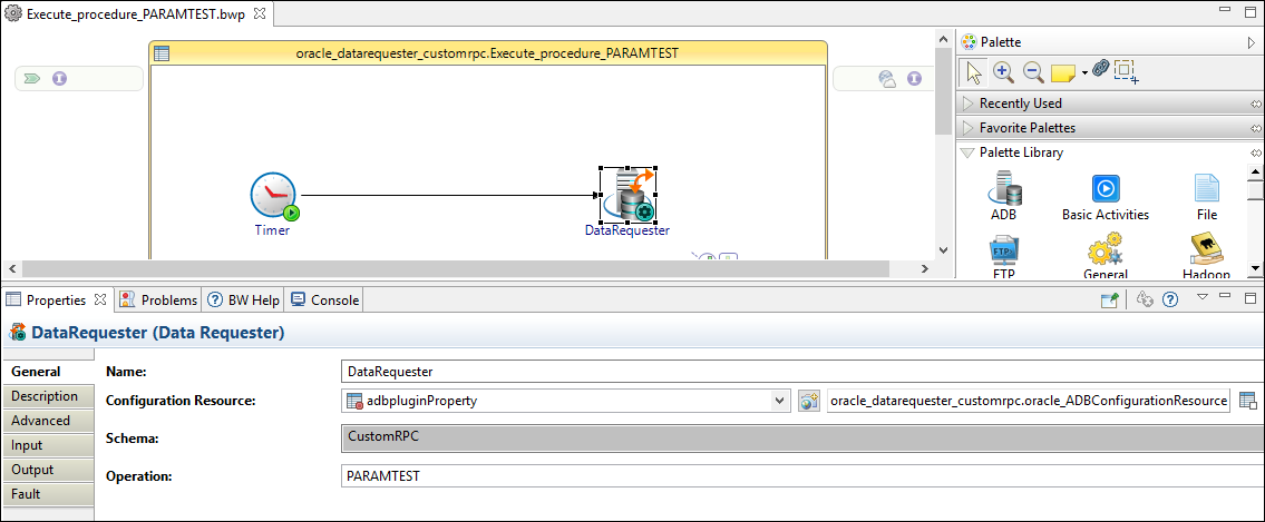 The OracleDataRequester_CustomRPC project contains four processes demonstrating remote procedure call mode using stored procedures and functions.
