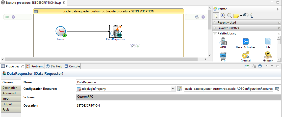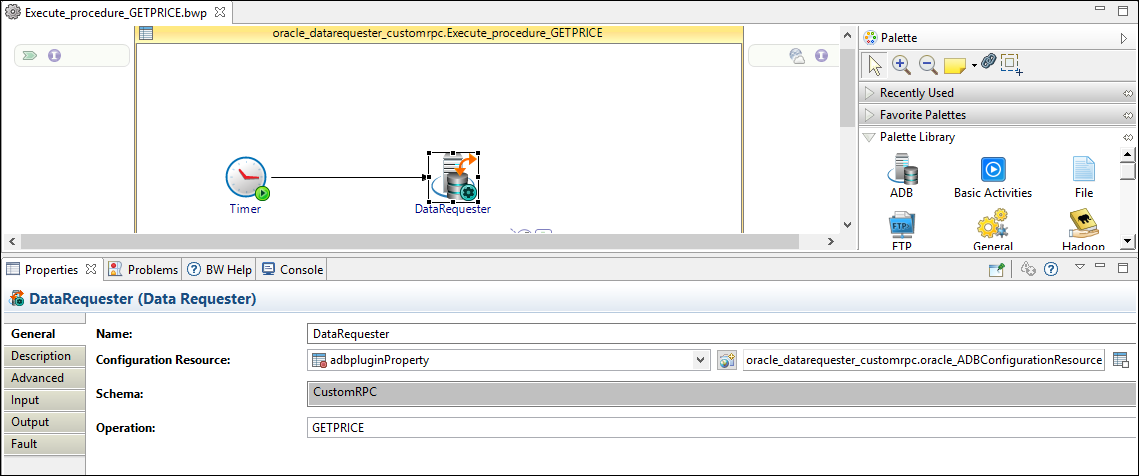 The following figure shows the General tab of the Execute_procedure_GETPRICE process: