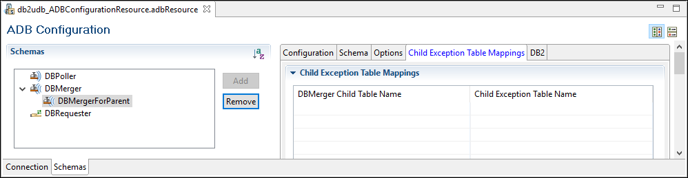 The Child Exception Table Mappings tab: