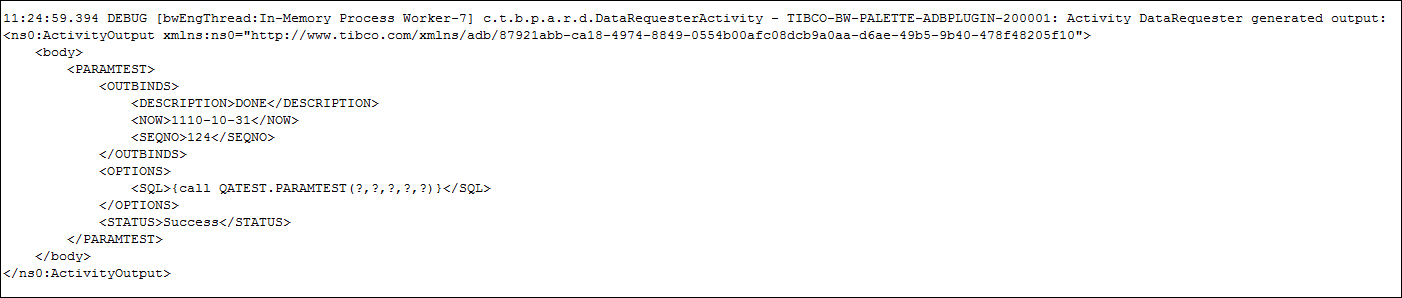 When the Execute_procedure_PARAMTEST process runs successfully, it returns the information corresponding to the input you have provided.