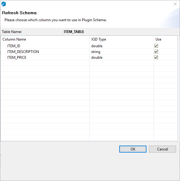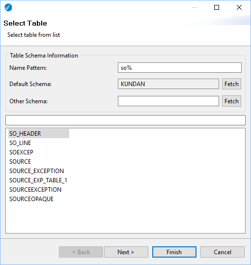 - If you set the value of the Default Schema field to a different schema (other schema) name other than the default schema specified in an Oracle database and select a table by performing the steps mentioned later, the table is loaded from the other schema and the publishing table is also generated in the other schema.