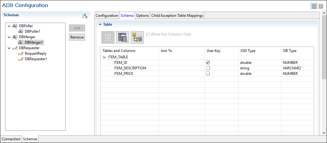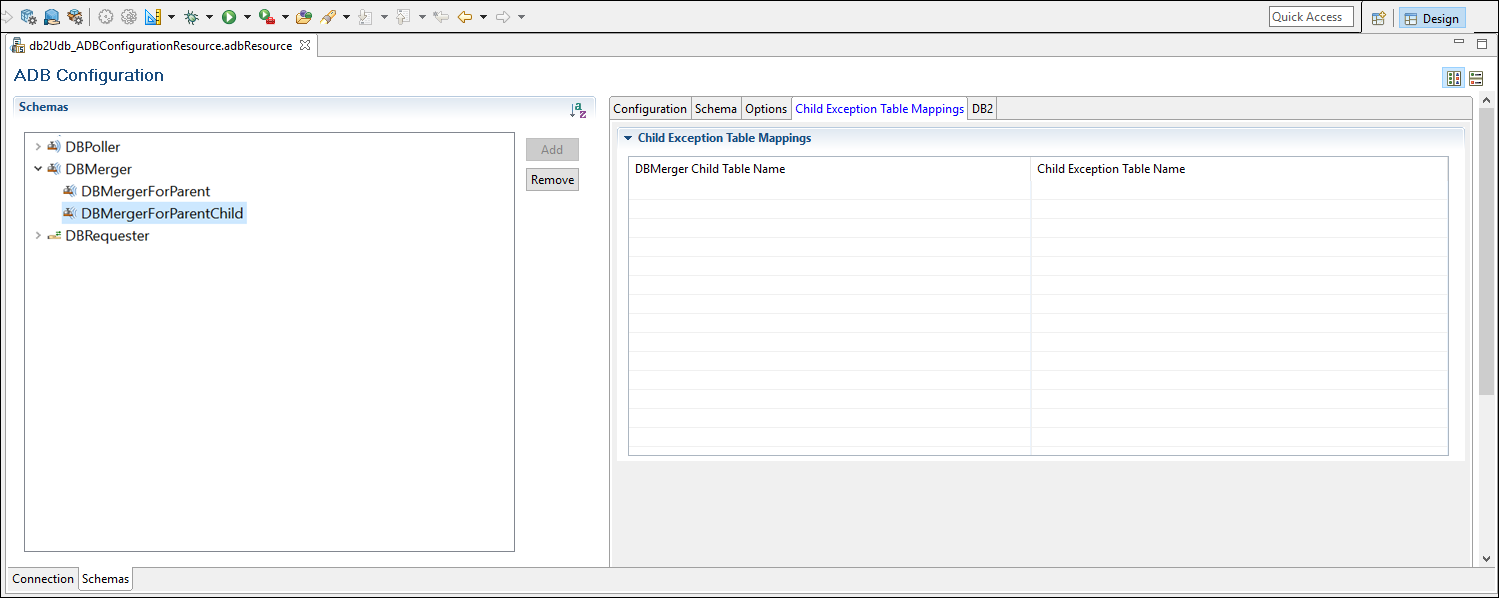 | DBMerger Child Table Name | Displays the list of child table names. |