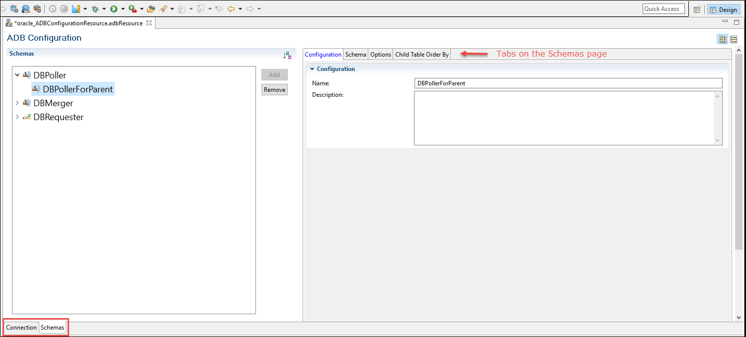 ADB Configuration shared resource: Schemas Page