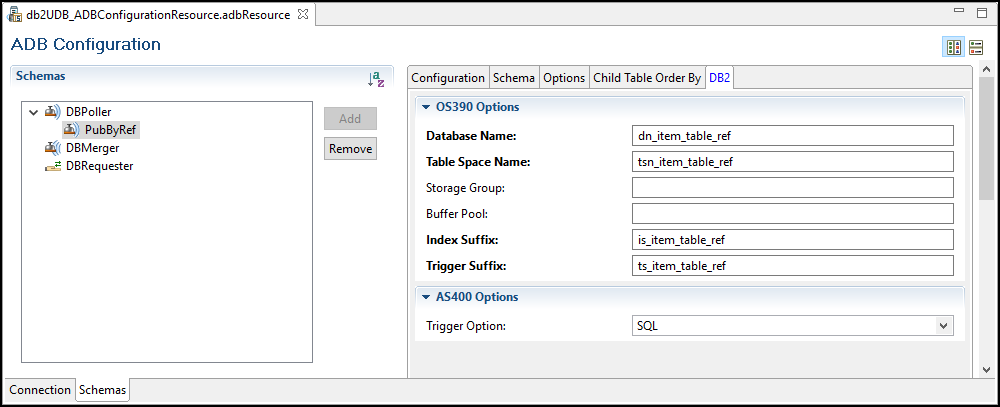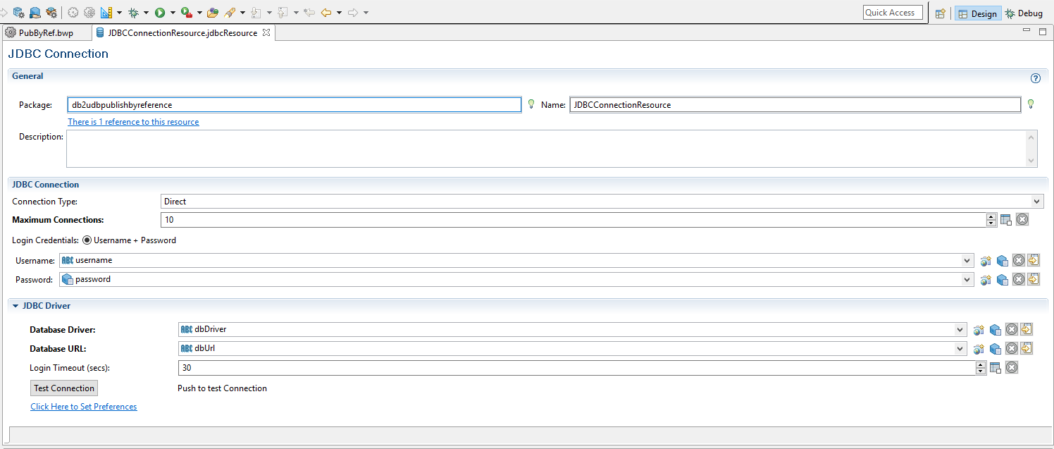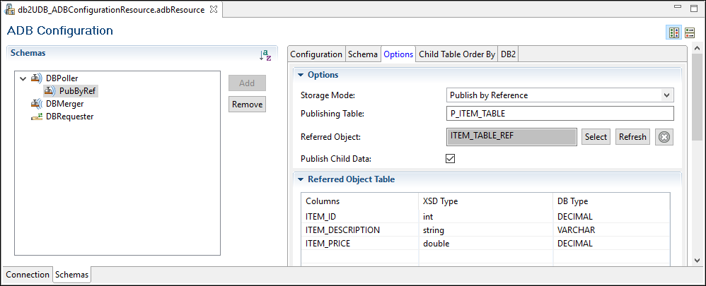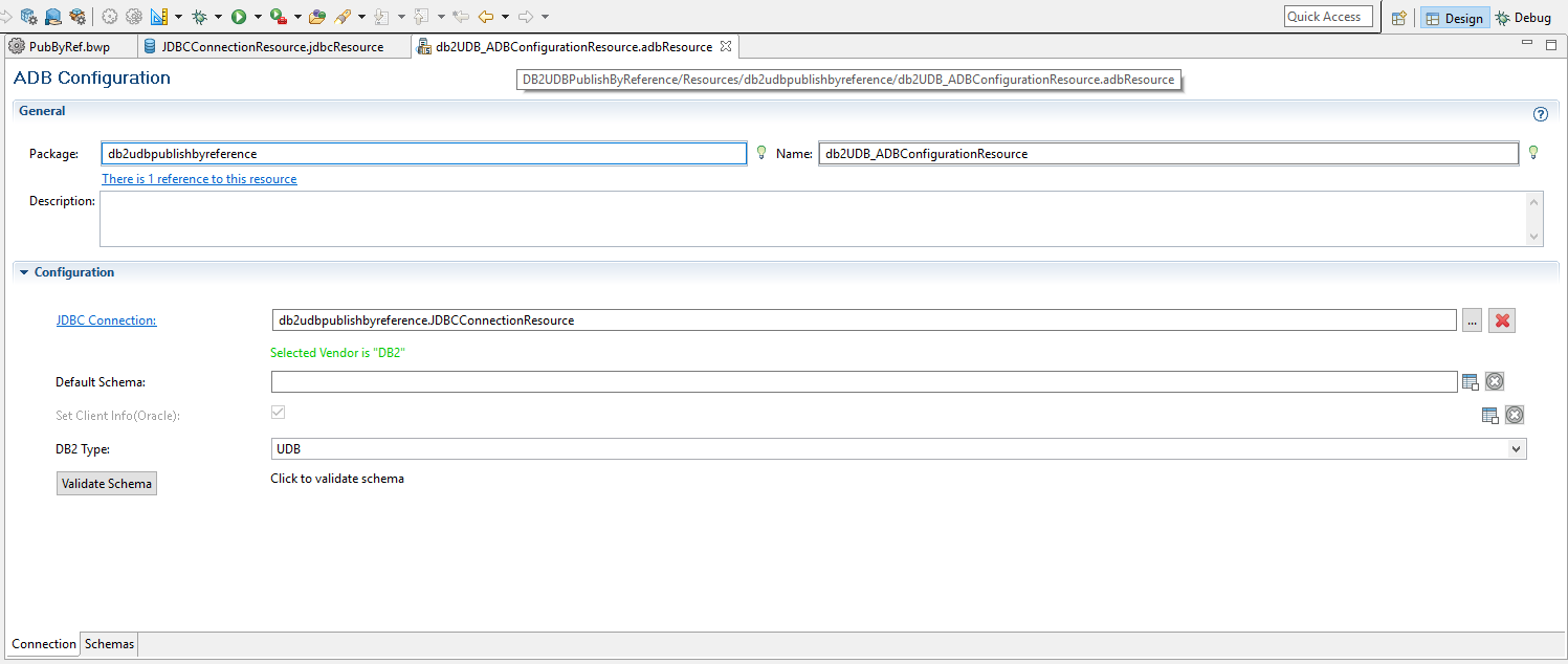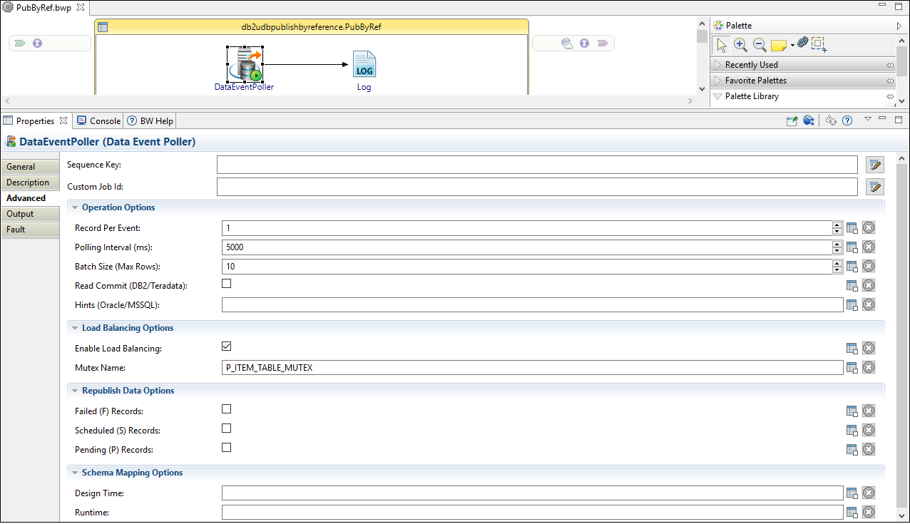 The MSSQLPublishByReference project contains one process: db2udbpublishbyreference.PubByRef process. This project demonstrates how the plug-in handles polling of data from a referenced object.