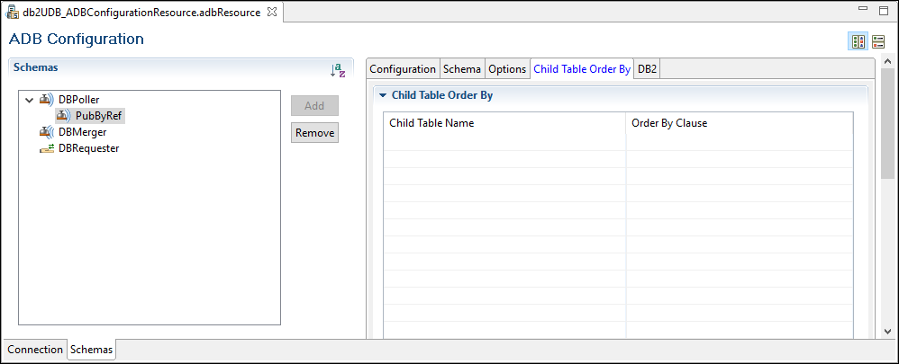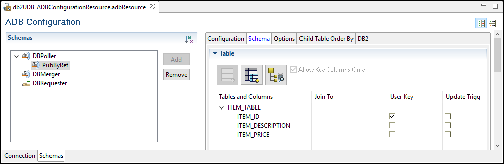 The table schema is defined by using the Schemas tab. The different tabs on the right are shown below.