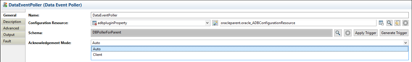 The Data Event Poller activity polls the change in a stage table in a specified time interval. The configuration allows you to generate the required trigger SQL script file to create stage table and triggers.