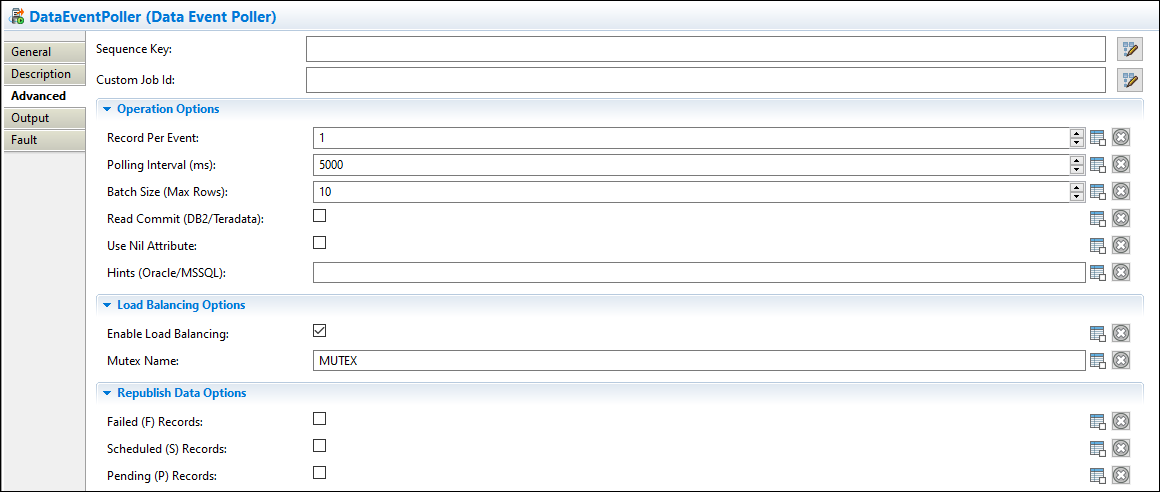 Record Per Event Yes Specifies the maximum number of database records to be retrieved per event to start a ActiveMatrix BusinessWorks job. The default value is 1.