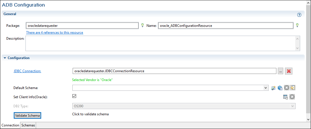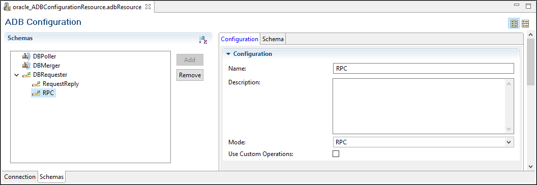 The Configuration tab is used to configure the schema. In the following figure, RPC mode has been selected.
