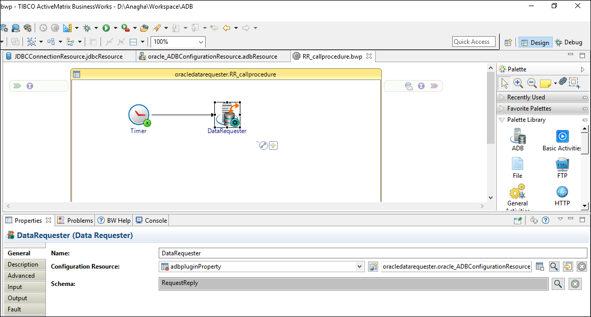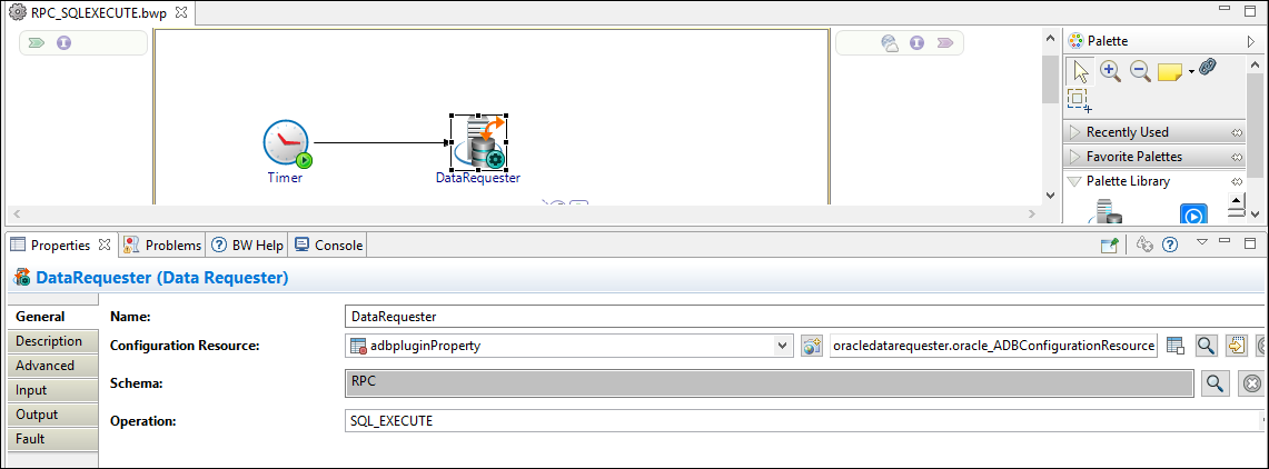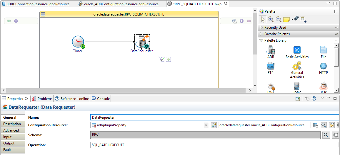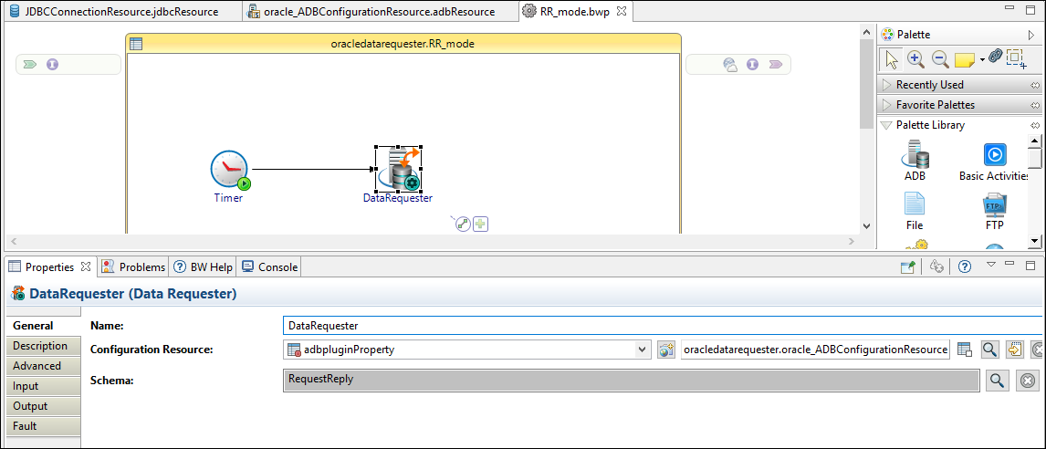 The OracleDataRequester project contains four processes demonstrating remote procedure call mode and the request reply mode. They also demonstrate SQL batch execute and SQL execute operations.