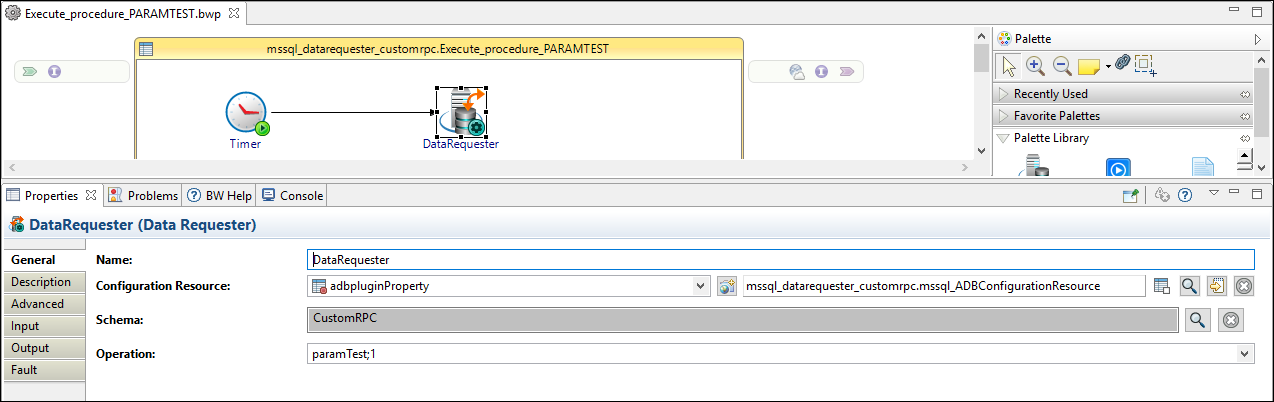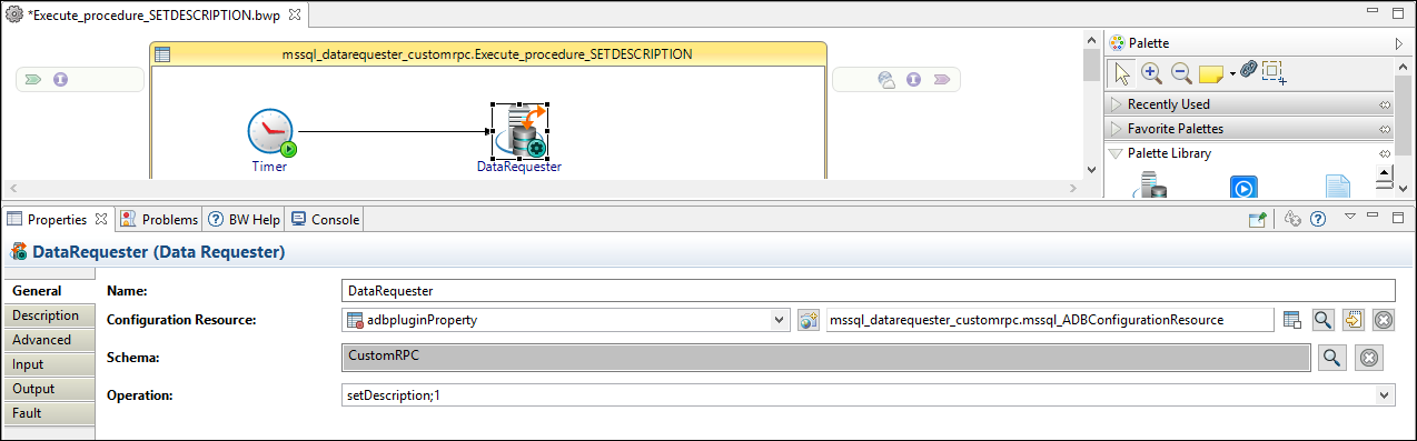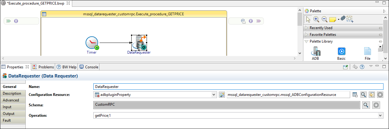 The following figure shows the General tab of the Execute_procedure_GETPRICE process: