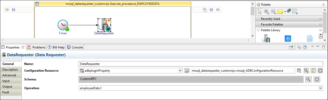 The following figure shows the General tab of the Execute_procedure_EMPLOYEEDATA process: