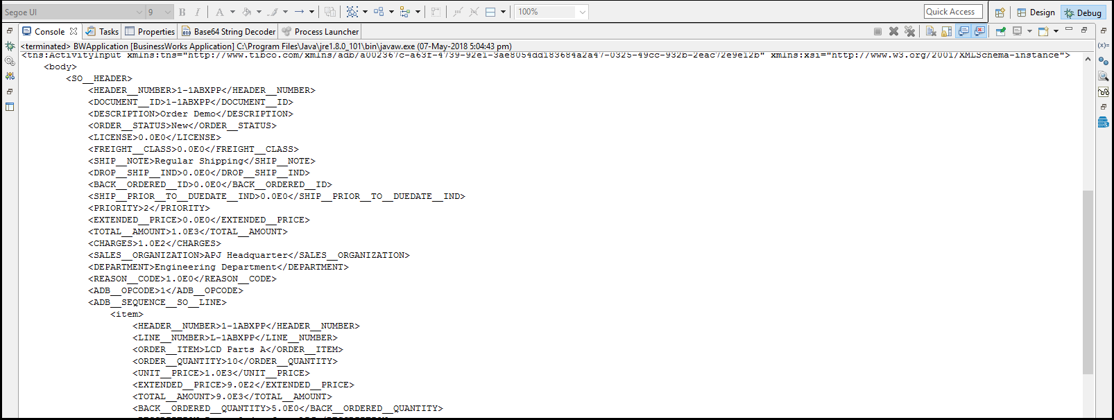- To run the selected process, on the menu bar, click Run > Debug Configurations.