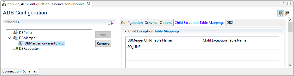 The Child Exception Table Mapping tab: