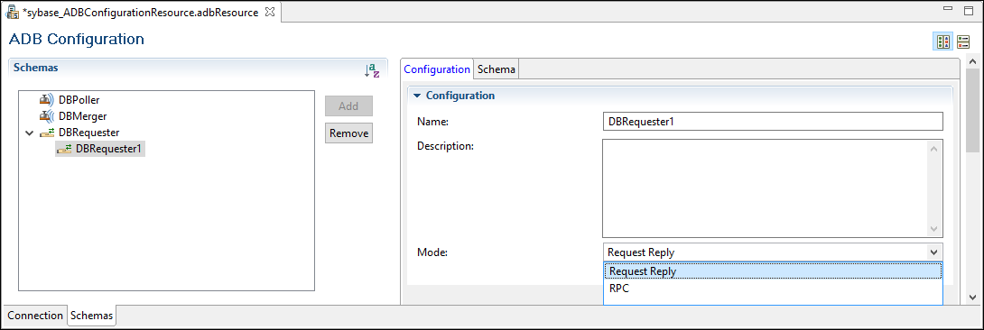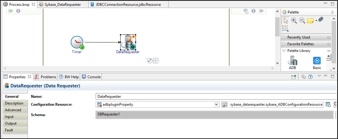 The SybaseDataRequester project contains one process demonstrating the request reply mode.
