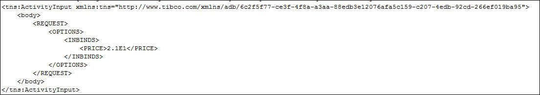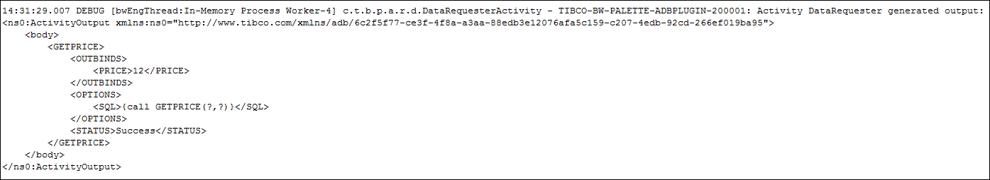 After the Execute_procedure_GETPRICE process runs successfully, its input and output can be seen as follows: