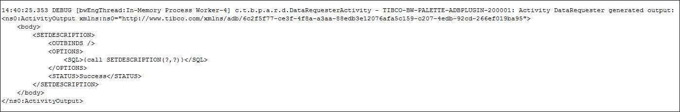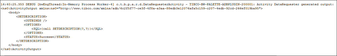 After the Execute_procedure_SETDESCRIPTION process runs successfully, its input and output can be seen as follows: