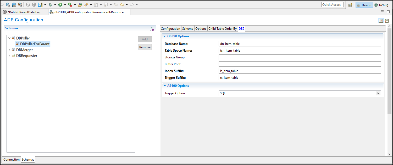 Shared Resource > Schemas Page > DB2 Tab for Data Event Poller activity