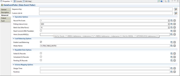 You can use hints with the Data Event Poller activity when performing a polling operation to fetch data from a table. Hints help improve the performance of your queries. Note that hints are available only for the Oracle and MSSQL databases.