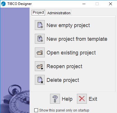 When starting TIBCO Designer, you must create or select a project. A project contains the configuration files that define options used by a runtime plug-in. After a project is configured, it is converted to a repository file and available for use by the runtime plug-in.