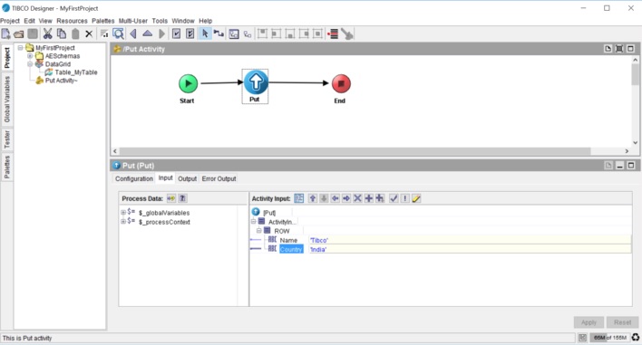 You must create a datagrid connection as described in Creating a DataGrid Connection and add a table as described in Adding a Table. You should have an empty process in the project you created.