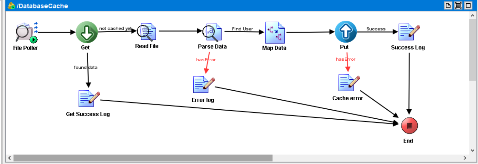 | Get Success Log | Writes the data in a row in the output.txt file if the row matches the input ID in the input.txt file. The output.txt file is located in the TIBCO_HOME/bw/plugins/as/bw5pluginas-samples/DatabaseCache/data directory. |