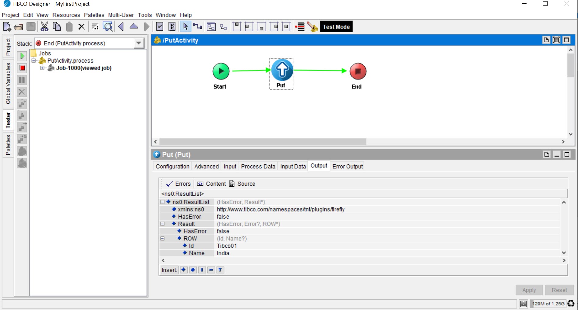 on the left of the Tester panel to start testing.