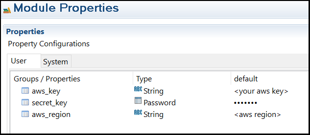 After importing the SqsSnsSamples.zip file, you must configure the module properties in TIBCO Business Studio™ and then run the processes. The module properties includes aws_key, secret_key, and aws_region, which is used to connect Amazon instance.