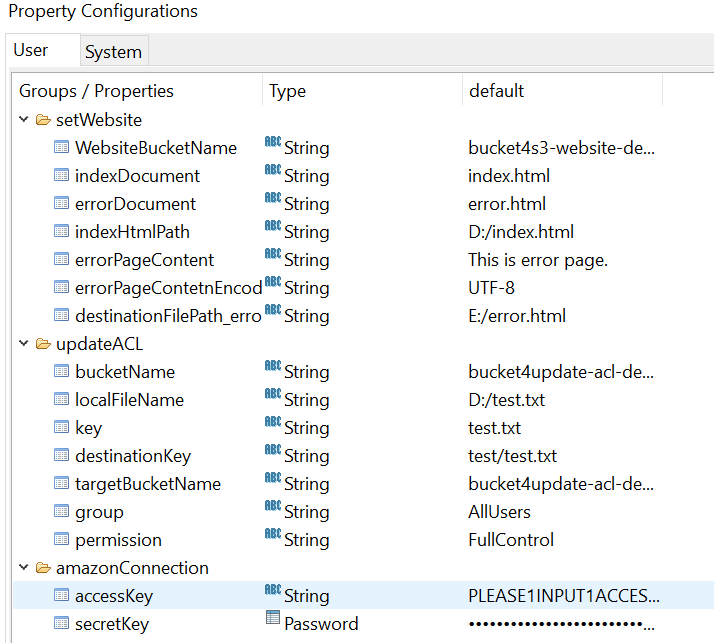After importing the AmazonS3Demo.zip file, you must configure the module properties before running the processes.